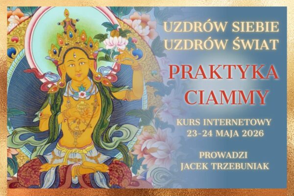 Uzdrowić siebie, uzdrowić świat praktyka Sierab Ciammy kurs internetowy, 23-24 maj 2026 Prowadzi: Jacek Trzebuniak Każdy z nas ma jakieś trudności, z tego powodu warto mieć jakieś narzędzia (jak praktyki duchowe), które potrafią pomóc w oczyszczeniu i uzdrowieniu danej sytuacji. Buddyzm tybetański oferuje wiele metod, które pomagają uzdrowić siebie i...
